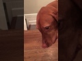 The girl wanted to test out her egg drop project that she had worked on. As soon as she dropped her contraption, the egg popped out of it and the family dog, Dutch, quickly grabbed it. When the father tried to retrieve the egg from Dutch, the egg was chomped and the yolk oozed all over the living room floor.